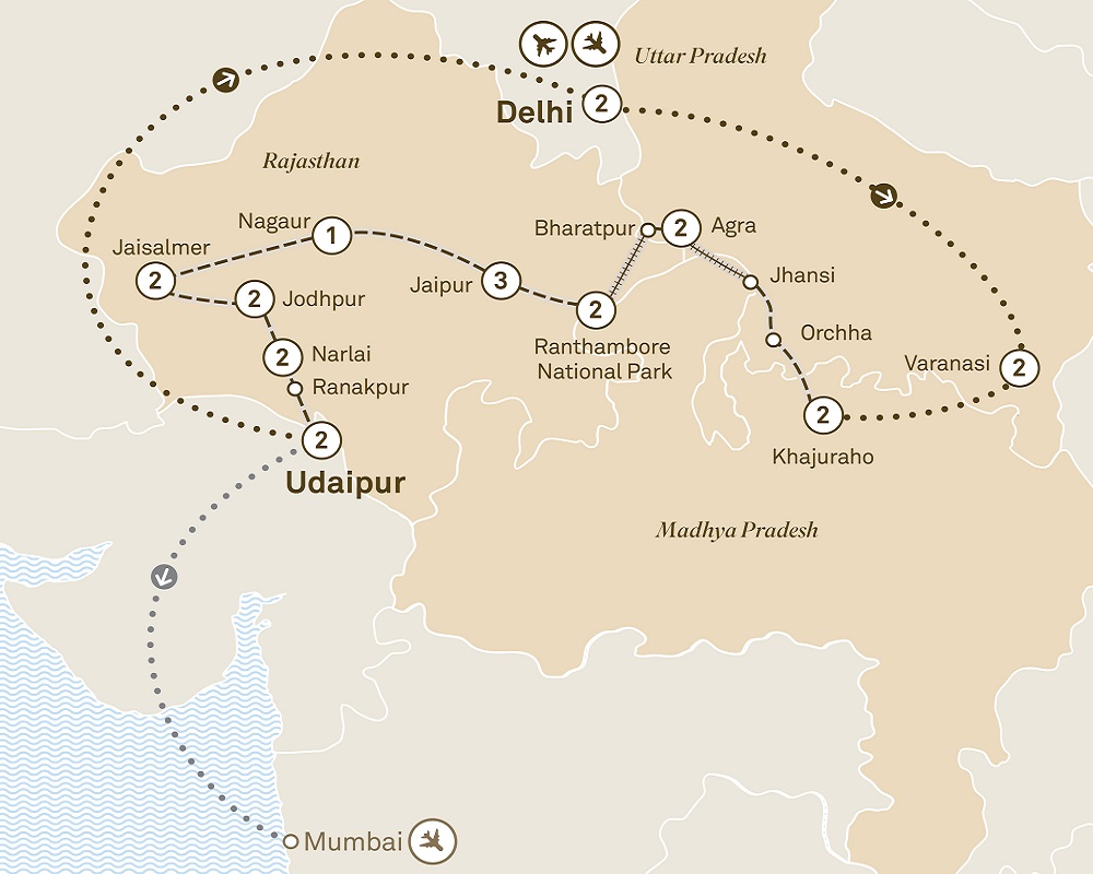 Bid farewell to India as you fly to Delhi (please book onward flights after 9.00pm). Alternatively, you can use your included flight to fly from Udaipur to Mumbai for a post-tour extension.